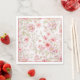 Jolies serviettes en papier avec une élégante aquarelle de tiges de fleurs roses avec bourgeons et fleurs.
