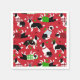 Chiens de Collie à la frontière mignonne dans des tenues de vacances festives portant chapeaux de Père Noël, bois, cordes de lumières et pois de polka et chandails de Jacquard sur un arrière - plan rouge avec des ornements épars.