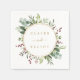 Cette serviette en papier mariage est ornée d'eucalyptus à l'aquarelle peinte, de feuilles verts, de baies rouges, de branches de pins et d'un cadre en faux cercle doré. Pour une personnalisation plus avancée de cette conception, cliquez sur le lien "Customiser plus loin". Des articles correspondants sont également disponibles.