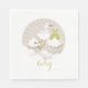 serviettes de baby shower avec illustration d'une cigogne dans les nuages avec faisceau vert. Le texte dit, "bébé"