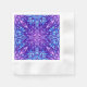 Motif d'hiver sans couture avec des flocons de neige néon. Un ornement de cristal clair. Texture festive avec des mandalas glacées sur un arrière - plan bleu. Motif avec décoration de neige violette et bleue.