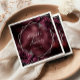 Ces élégantes serviettes mariages modernes sont décorées d'un cadre géométrique argenté orné de fleurs bordeaux et argentées sur un arrière - plan bordeaux en faux feuille. Ajoutez les noms du couple en écriture manuscrite gris argenté sur une grande esperluette, ainsi que la date du mariage ci-dessous.