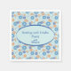 Cette serviette en papier est agrémentée d'un motif graphique de boutons orange et bleu et d'aiguilles à coudre posées contre un arrière - plan bleu clair. Le texte est facile à customiser pour la couture, la couture et l'artisanat des événements ou toute fête en l'honneur de quelqu'un qui aime ces choses.