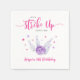 Corbeille à thème de bowling fille de fête d'anniversaire avec l'illustration aquarelle d'une boule de bowling frappant quelques épingles avec des étoiles rose et violet volant. Le texte dit "Faisons un peu de plaisir !"