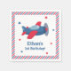 Party fournit des serviettes en papier avec un petit avion à hélice rouge et bleu avec étoiles et rayures en arrière - plan. Palette de couleur rouge, bleu et blanc. Personnalisez avec votre message de fête, parfait pour une fête d'anniversaire sur le thème de l'avion.