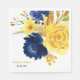 Voici une serviette en papier mariage à fleurs qui a un bouquet floral clair aquarelle en bleu marine et jaune or, avec des touches de bleu clair et vert. Votre texte personnalisé est en bleu foncé et or dans le coin inférieur gauche. Ces serviettes correspondent aux produits mariages, y compris les invitations, dans notre magasin. *Crédit de conception d'oeuvres d'art à LABFcreations.