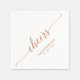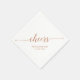 Ajoutez des détails élégants à votre journée spéciale avec cette serviette de soirée d'automne. Ce design présente une typographie élégante "Cheers" en orange brun avec texte personnalisé. Vous pouvez personnaliser le texte pour n'importe quel événement ou fête. Des invitations et des fournitures de fête correspondants sont disponibles dans ma boutique BaraBomDesign.