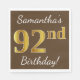 Serviette En Papier Brown, Faux Gold 92e anniversaire + Nom personnali