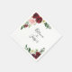 Fleurs d'aquarelle et feuillage rose et bordeaux, serviettes en papier personnalisées. Les serviettes sont disponibles, de jolis cadres d'angle fleuris avec des lignes de texte modèle de script noir pour les noms. Conçu pour correspondre à notre collection de fleurs botaniques de Bourgogne.