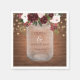 Ces serviettes en papier mariage à fleurs rustiques sont recouvertes d'un bouquet de fleurs bordeaux et rousses sur un bocal de maçon portant les noms de la mariée et du marié et la date mariage à l'intérieur. Des lampes à cordes ornent le dessus du design, avec un arrière - plan en bois rustique marron foncé.