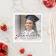 Serviettes modernes de fête de graduation avec une photo personnalisée avec superposition de texte. Remplacez facilement l'exemple d'image par une photo de votre diplômé. Le mot "Graduate" apparaît dans un script d'écriture manuscrite bordeaux, avec le nom, l'école et l'année de graduation ci-dessous dans la police sans serif. Une superposition de dégradé blanc aide à faire apparaître le texte bordeaux. Idéal pour obtenir un diplôme d'études secondaires ou collégiales.