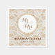 Cette serviette jetable est ornée d'une photo de burlap avec une dentelle en guise d'arrière - plan. Un cercle blanc avec une bordure brune est un texte qui se lit : M & Mme Texte personnalisable, près du bas, vous permet d'ajouter les noms de la mariée et du marié et leur date de mariage.