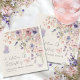 A Lifetime of Butterflies Bridal Shower Napkin. Add a touch of whimsical romance to your bridal shower with this charming napkin design, perfect for an "A Lifetime of Butterflies" themed celebration. The artwork features a delicate mix of watercolor wildflowers and greenery, with multiple pink and purple butterflies fluttering across the front. The color palette includes blush pinks, dusty rose, lilac, lavender, violet, and fresh greens for a soft, garden-inspired look.