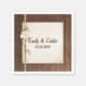 Noeud à corde avec hydrangée d'ivoire et bouquet de lierre sur bois de grange brun rustique pour mariage. Tout le texte est modifiable.