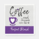 Serviettes de table. Café et amis sont le mélange parfait. Pâle, gris foncé et violet, avec des coeurs d'amour.