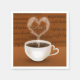 Une illustration de la Coupe du café avec une tasse blanche de café chaud avec de la fumée en forme de coeur sur un arrière - plan marron avec typographie au mur.