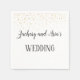 Ces serviettes Gold Confetti Calligraphy sont parfaites pour un mariage élégant. Le design présente des confettis en faux or sur un arrière - plan blanc avec une calligraphie gris foncé classe. Personnalisez la serviette avec les noms du couple.