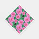 Serviettes en papier dans un motif de fleurs de camélia dans les tons rose fuchsia profond à pastel, contre un arrière - plan de feuilles vert jade foncé