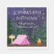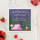 Une fille glamping des serviettes de fête d'anniversaire avec une tente rose mignonne et le feu de camp sur un arrière - plan de forêt étoilé la nuit. Ces jolies filles campant serviettes de fête d'anniversaire sont facilement customisées pour votre événement en ajoutant simplement vos détails dans le style de police et le libellé de votre choix.