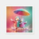 Deux adorables canards portant des imperméables colorés se tiennent ensemble sous un grand parapluie vif pendant une tempête de pluie