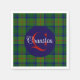Serviettes en papier, avec le clan écossais coloré Cranstoun / Cranston tartan plaid motif. Un disque rond bleu, au centre, a un monogramme à une seule lettre fait en rouge, et le nom de monsieur fait en blanc, et sont prêts à personnaliser. Idéal pour tout rassemblement.