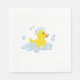 Petit canard en caoutchouc jaune mignon nageant en bulles bleues