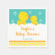 Cette serviette mignonne et amusante présente un adorable canard jaune et canard en bulles de bain savonneuses blanches sur un arrière - plan vert vif avec un ruban orange et des rayures jaunes. Le texte combine écriture manuscrite et polices sans serif pour un look élégant et moderne. C'est parfait pour un Baby shower.