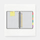 Un carnet et un crayon ouverts et des pages blanches avec des onglets. Ce design semble vraiment efficace sur ces serviettes en papier