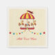 Une serviette en papier avec carrousel et des drapeaux festifs à l'étoile sur arrière - plan jaune pâle avec des rayures subtiles. Parfait pour un événement autour du cirque. Coordination de l'invitation disponible.