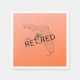 Célébrez les meilleures années de votre vie avec ces belles serviettes en papier à thème pour la retraite. Le design présente une carte de l'état de Floride avec le dicton "Heureusement retraité." Un palmier tropical remplace la lettre "i" à la retraite ! L'arrière - plan est un dégradé contemporain de couleur orange. Disponible en taille cocktail, déjeuner et dîner. Vendus par lot de 50. Les serviettes en papier sont parfaites pour les fêtes de retraite, les fêtes de piscine, célébrant les grands-parents, les personnes âgées, les snowbirds, ou toute personne prenant sa retraite en Floride! Parcourez notre collection complète de cartes de retraite à thème tropical, cadeaux, t-shirts, décors de maison, et plus encore. Demandes spéciales de design acceptées.
