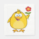 Un poussin de dessin animé tenant une fleur. Ce design semble vraiment efficace sur ces serviettes en papier
