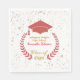 Serviettes de fête en papier pour cette fête spéciale de fin d'études secondaires ou collégiales avec texte personnalisé. Caractéristiques image d'un casquette gris rouge et couronne de laurier accentuée de faux confettis d'or. Plaque de papier correspondant, également noir, bleu et d'autres groupes de couleurs également disponibles dans cette même conception