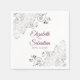 Ces belles serviettes feront de votre réception de mariage quelque chose de spécial. Elles présentent un design simple mais élégant avec du cassis violet ou du texte magenta et gris sur un arrière - plan blanc avec des coins floraux frileux en faux feuille argent. Personnalisez facilement avec vos noms et la date du mariage.