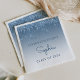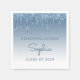 Ces serviettes en papier chic et élégantes de fête de graduation présentent une bordure brillante bleue imitant la parties scintillant et un arrière - plan bleu sombre. Personnalisez-les avec le nom de l'invitée d'honneur en écriture manuscrite bleue, avec son année de classe ci-dessous en police sans serif. Idéal pour obtenir un diplôme d'études secondaires ou collégiales.