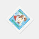 Célébrez la saison des Fêtes avec un mignon chiot Cavalier King Charles Spaniel assis dans un chapeau de Père Noël au milieu des flocons de neige et les mots, Happy Howlidays!