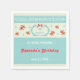 Belles serviettes vintages en papier de célébration d'anniversaire qui a une bordure féminine supérieure décorée de roses et dentelle et un arrière - plan blanc pois pois pois pois polka! Bon appétit !