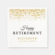 Ces serviettes sont parfaites pour toute célébration de la retraite. Le design offre du texte personnalisé pour vous de personnaliser avec un nom et est accentué avec des confettis de parties scintillant d'or sur un arrière - plan blanc.