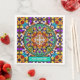Transformez un événement en fête avec cette mosaïque couleur carnaval et la zone de texte en verre vert jade assortie. La partie centrale du motif a une illusion encastrée, comme si l'on regardait à travers le verre les couches inférieures. L'aspect compass point du milieu du design fait de ce grand pour les thèmes nautiques, tandis que la palette turquoise, vert violet et blanc fait écho mardi gras et autres carnavals et célébrations culturelles.