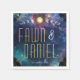 Serviettes Mariages de phase de lune céleste. Montrez votre style unique avec un arrière - plan de galaxie violet et bleu avec une phase de lune brillante au-dessus. On retrouve des accents dorés éparpillés autant que des étoiles dans la galaxie. Collection Mariage complète dans la boutique.