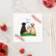 serviettes en papier baby shower sur le thème du baseball. Un bébé assis à côté de deux chiens, un laboratoire noir et un laboratoire jaune.