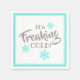 Une serviette en papier amusante, parfaite pour votre fête d'hiver ou de vacances pour "briser la glace" (jeu de mots prévu !). Ce design présente un texte de script de brosse moderne avec des flocons de neige bleu cyan et des bordures assorties autour du design. Santé!
