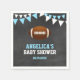 Belles serviettes en papier jetables de baby shower de FOOTBALL modernes avec arrière - plan en faux tableau et drapeaux de bunt en blanc et bleu. Ballon de football en milieu - parfait pour cette fête sportive à thème. Personnalisez-les en ajoutant le nom et la date d'option de la mère à être. Voir collection