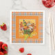 Un Panier De Campagne Plein De Champignons Frais Dans Un Plaid Orange, Une Belle Serviette De Papier Dîner Coloré Pour Les Fêtes D'Automne