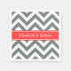 Serviette En Papier Charbon Blanc LG Chevron Corail Nom rouge Monogram