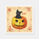 Serviette En Papier Chat d'Halloween en Coussin Citrouille