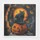Serviette En Papier Chat noir Éffrayant d'Halloween sur une lanterne J