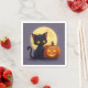 Serviette En Papier Chat noir mignon avec Citrouille sculpté brillant