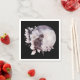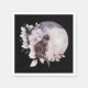 Serviettes en papier avec une aquarelle représentant un chat noir et un bouquet floral violet clair et rose. Devant une grande lune. Design et magique.