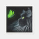 Serviette En Papier Chat Noir qui s'agenouille à un papillon vert bril