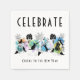 Des serviettes de cocktail colorées et amusantes pour aider à sonner dans la nouvelle année! Les chats de jazz en silhouette jouent le tambour, le cymbale, la trompette, le piano et la contrebasse, devant les feux d'artifice, les ballons et les faiseurs de bruit. Le mot CÉLÉBRATE est en haut en gras. En bas, on peut lire "COULEURS À LA NOUVELLE ANNÉE" ... pour égayer n'importe quel décor de fête.